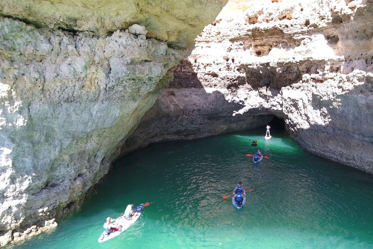 Segue o teu guia experiente enquanto remas pelas águas turquesa, explorando cavernas secretas e locais isolados que só são acessíveis pelo mar. Uma explicação completa sobre segurança garante que te sintas confortável, mesmo que sejas iniciante. Após a experiência de caiaque, volta para o barco e desfruta de um passeio tranquilo de volta à marina enquanto aprecias as vistas finais da costa algarvia.