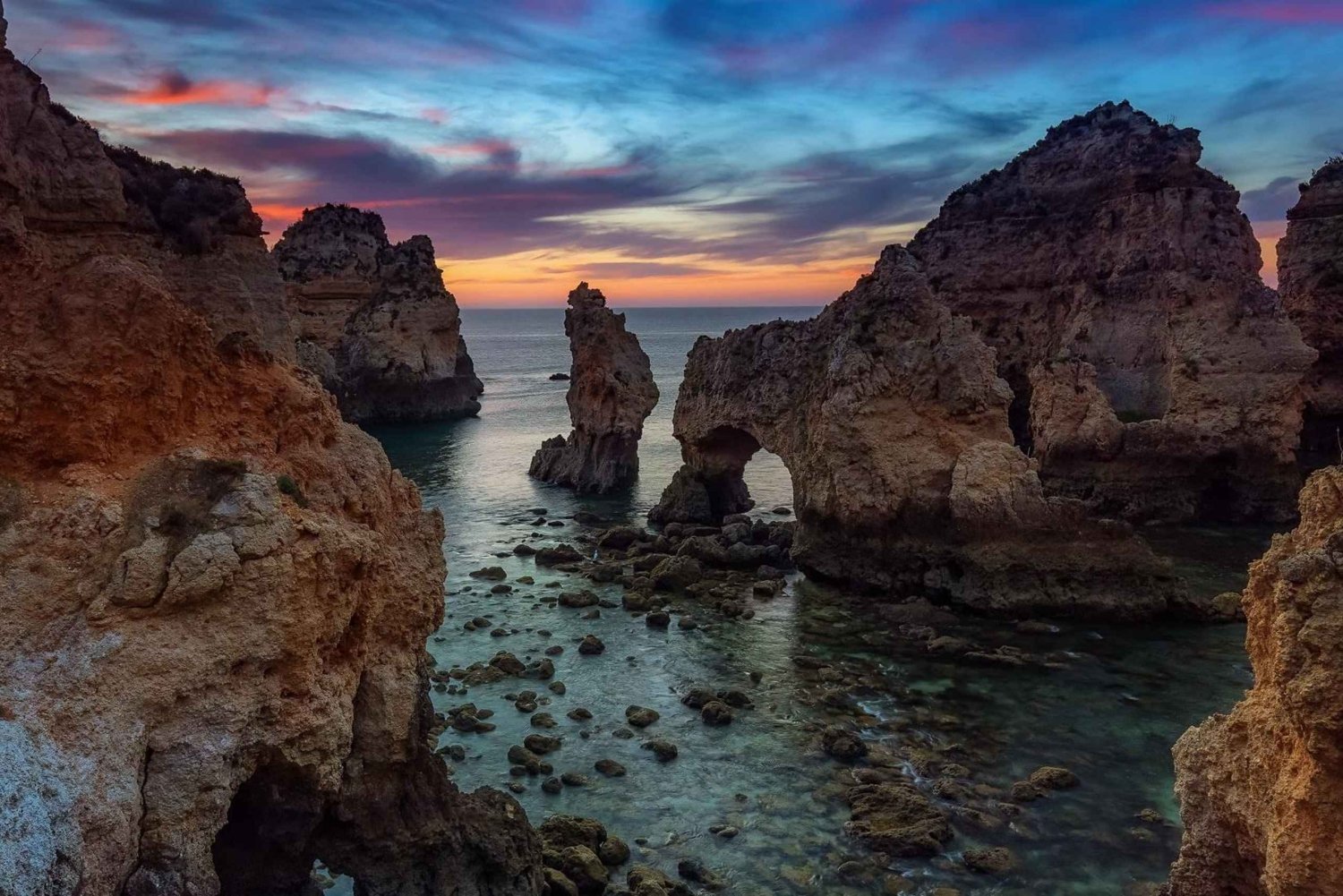 Embarca numa viagem inesquecível de Lisboa para a deslumbrante região do Algarve. Explora o deslumbrante Algar Seco, visita a Gruta da Boneca, a Gruta de Benagil e relaxa em Lagos. Admira as falésias dramáticas e as águas cristalinas e descobre o charme histórico de Lagos – Praia Dona Ana / Praia do Camilo e Ponta da Piedade.