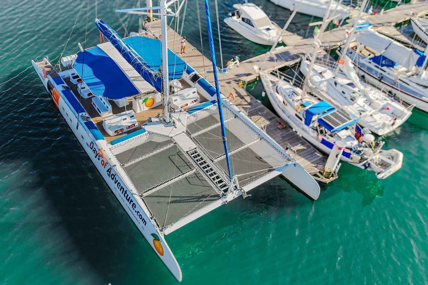 - Sente o sol na pele enquanto relaxas nas redes da frente do catamarã.