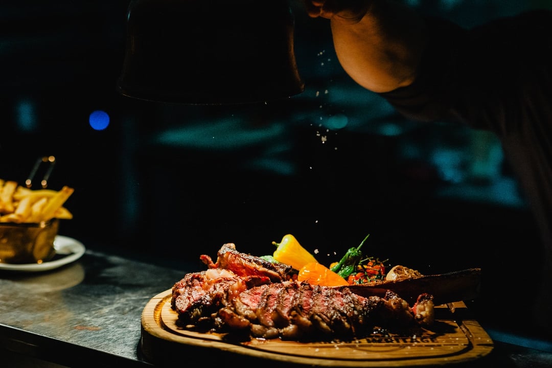A bela e eclética decoração é um festim para os olhos e prepara o cenário para a comida excepcional que é servida no Bovino. Carne tenra e suculenta de origem do Uruguai, Argentina, EUA e Austrália, envelhecida a seco por 28 dias, cozinhada com cuidado e servida com elegância é o que define o Bovino. Escolha o seu corte favorito - filé, T-bone, Ribeye ou um Chateaubriand para partilhar....adicione o molho perfeito, os acompanhamentos favoritos e desfrute.