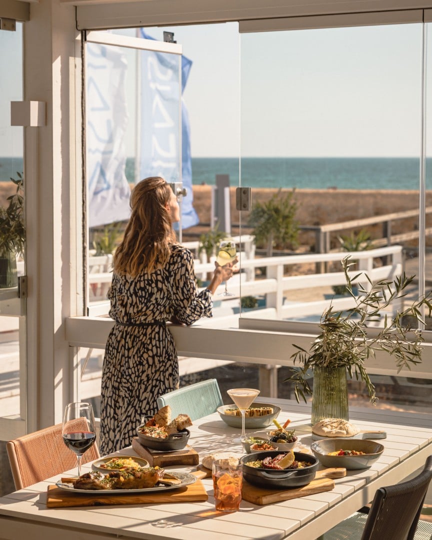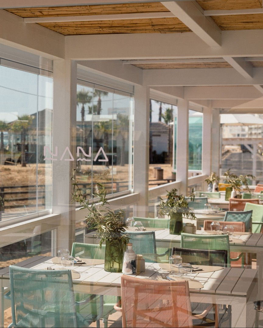NANA na Praia pelo Vila Vita Parc. Refeições mediterrânicas à beira-mar durante todo o ano, com inspiração grega. Aberto para o café da manhã até o final do dia. Desfrute de sabores deliciosos, uma ótima lista de vinhos e bebidas, e as vibrações descontraídas dos bons momentos à beira-mar, com vista para a praia de Armação de Pêra.