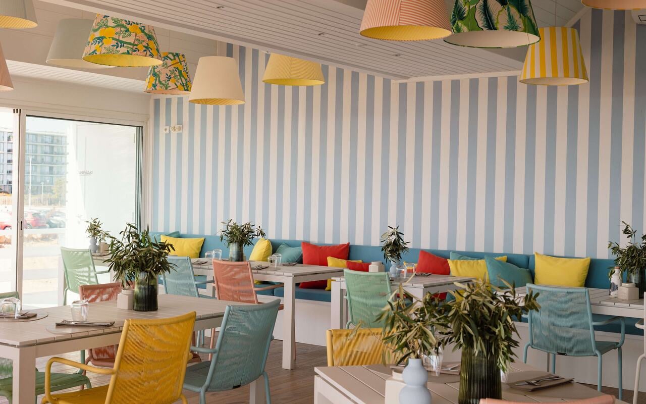 NANA na Praia é uma ode ao verão que você pode desfrutar durante todo o ano! Cores frescas que combinam com a paisagem de areia dourada, céu azul e oceano. Um ambiente descontraído para que você possa apreciar com calma a comida saborosa ou saborear uma bebida gelada. O terraço de madeira branca com vista para a praia convida você a saborear refeições tranquilamente, temperadas com sol e brisa marinha. As paredes de vidro retráteis permitem que você desfrute dos prazeres do NANA na Praia durante todo o ano.