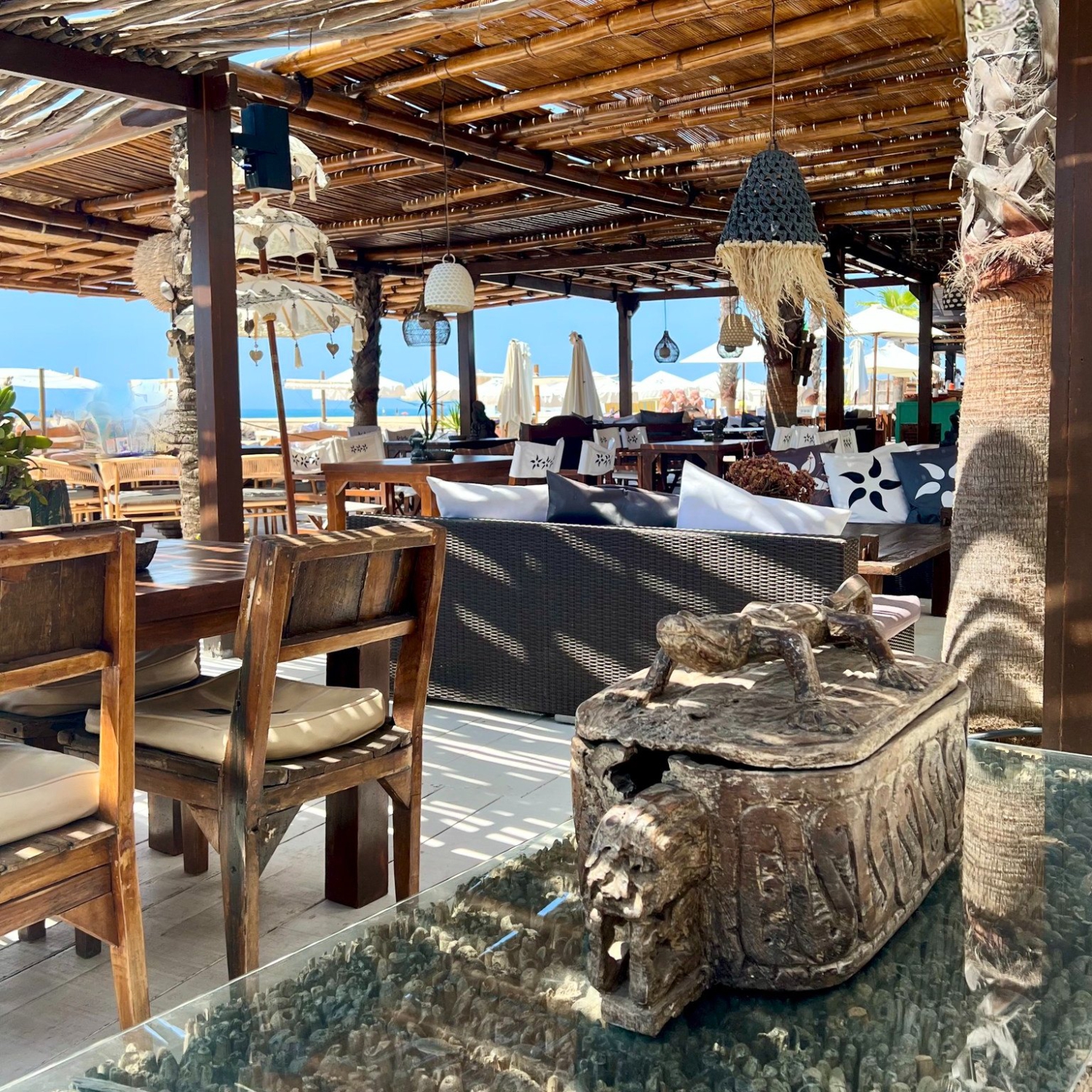 Ao lado do clube de piscina do NoSoloÁgua está o NoSoloÁgua Beach Club - um bar de praia chique, com areia entre os dedos dos pés, onde mar, areia e bons momentos se unem lindamente. As cadeiras de rattan, espreguiçadeiras e camas de dossel de tamanho super são perfeitas para relaxar com os amigos. Um mergulho ocasional no mar, sua bebida favorita e ótimos sons são todos os ingredientes para um dia perfeito.