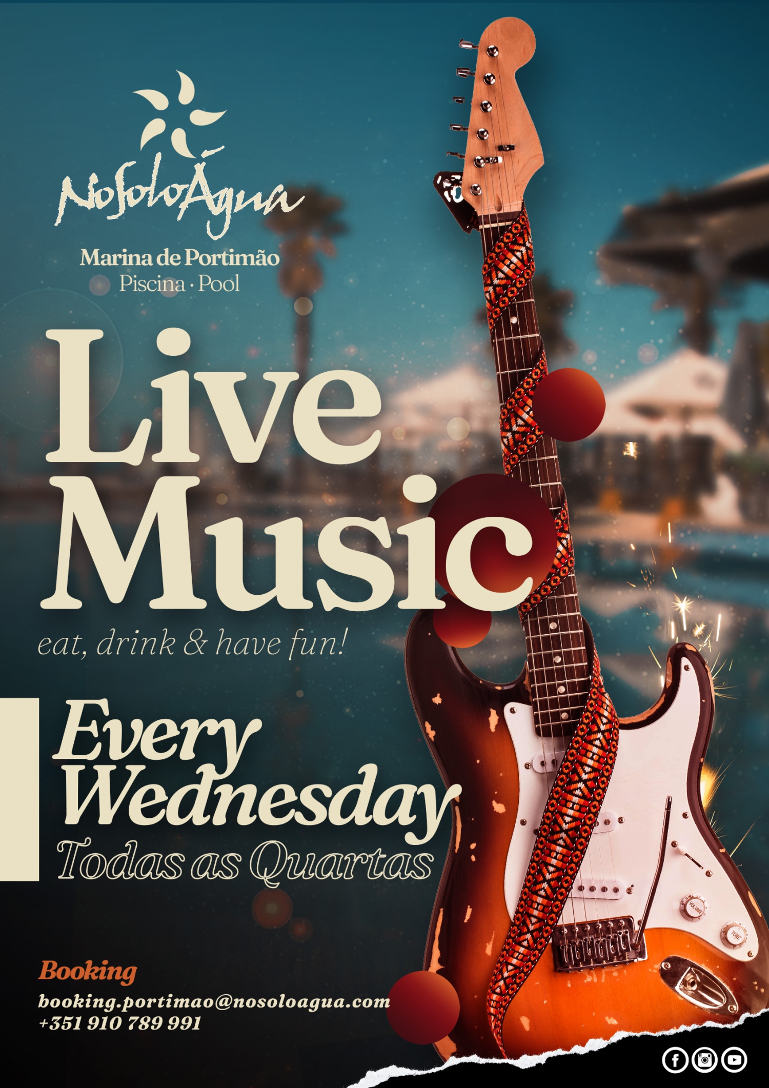 - Noites de música ao vivo todas as quartas-feiras à beira da piscina