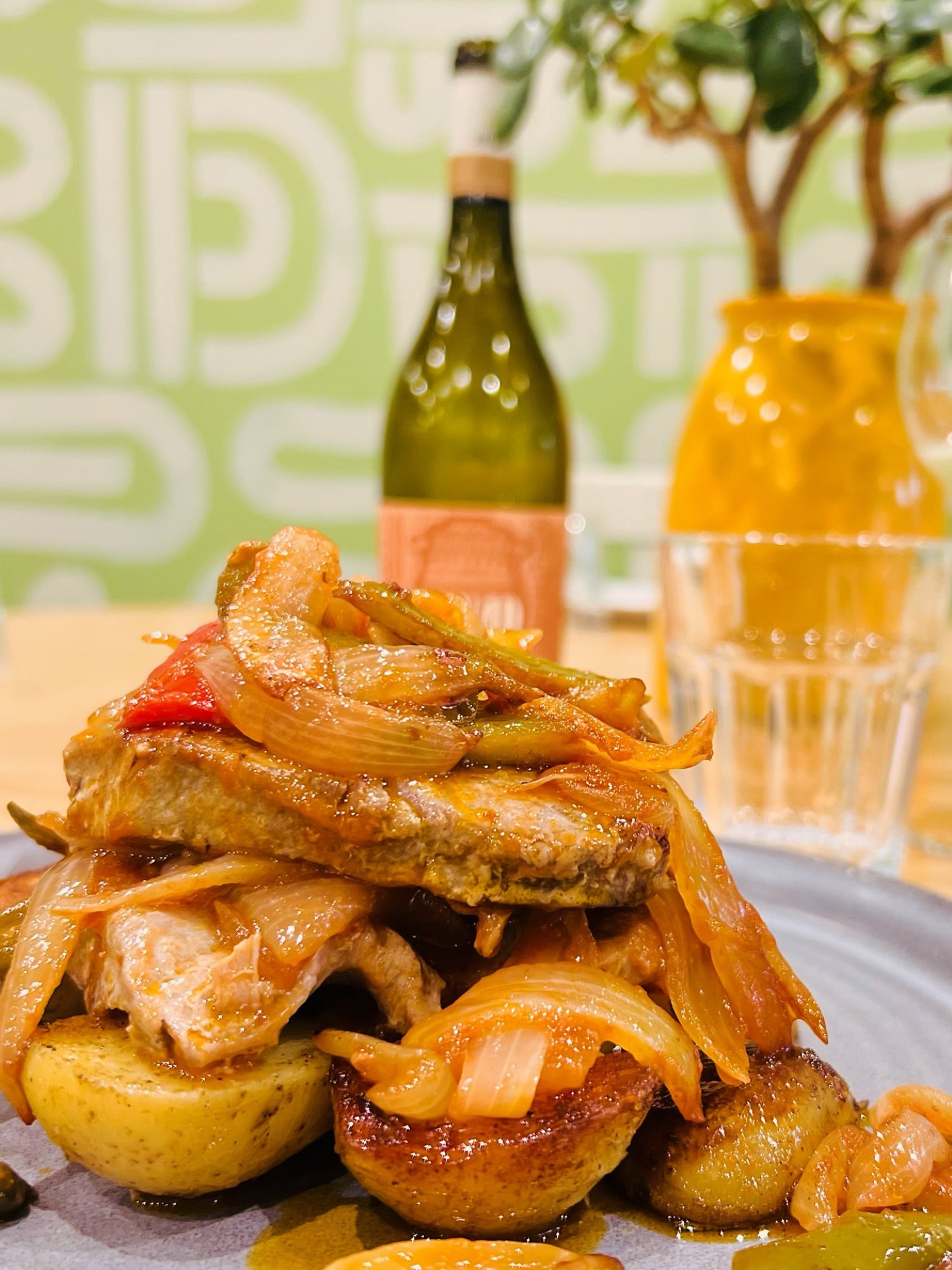 Vilken typ av vin serveras med Algarvian Tuna på O Finalmente?