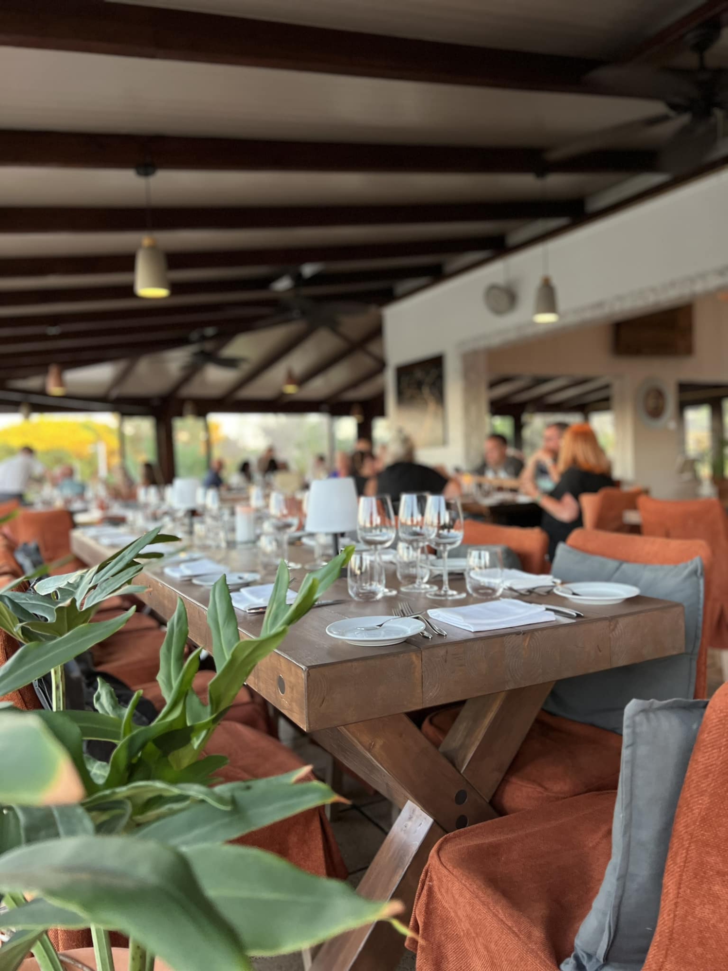 The dining room here gives you the best of both worlds - it is indoor but with glass walls that open, letting the outside in during the summer, and keeping you cosy during the winter.
