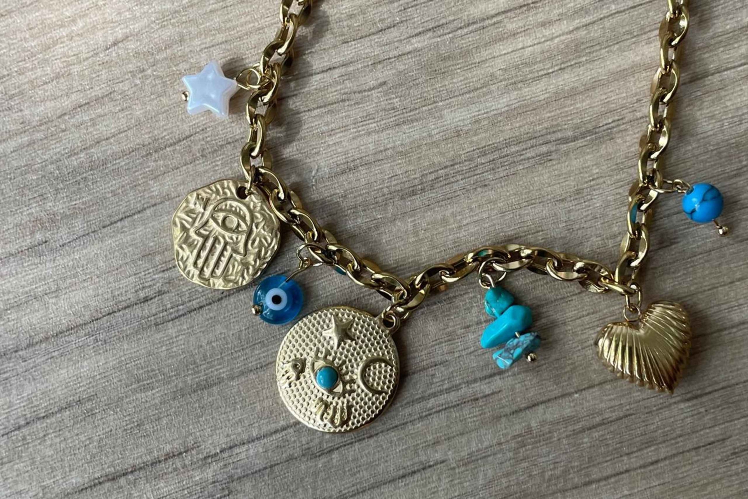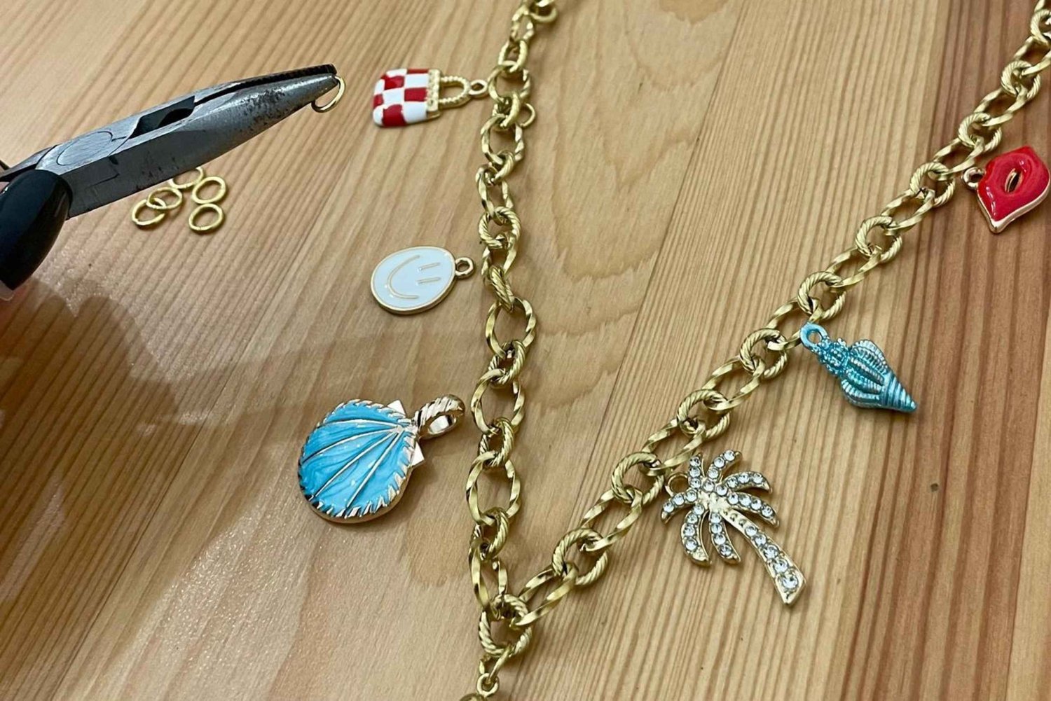 Delta i en unik smyckesworkshop i Algarve. Under den här kreativa sessionen kan du designa och skapa ditt eget armband, halsband eller väskhänge med vackra hängen och material i rostfritt stål.