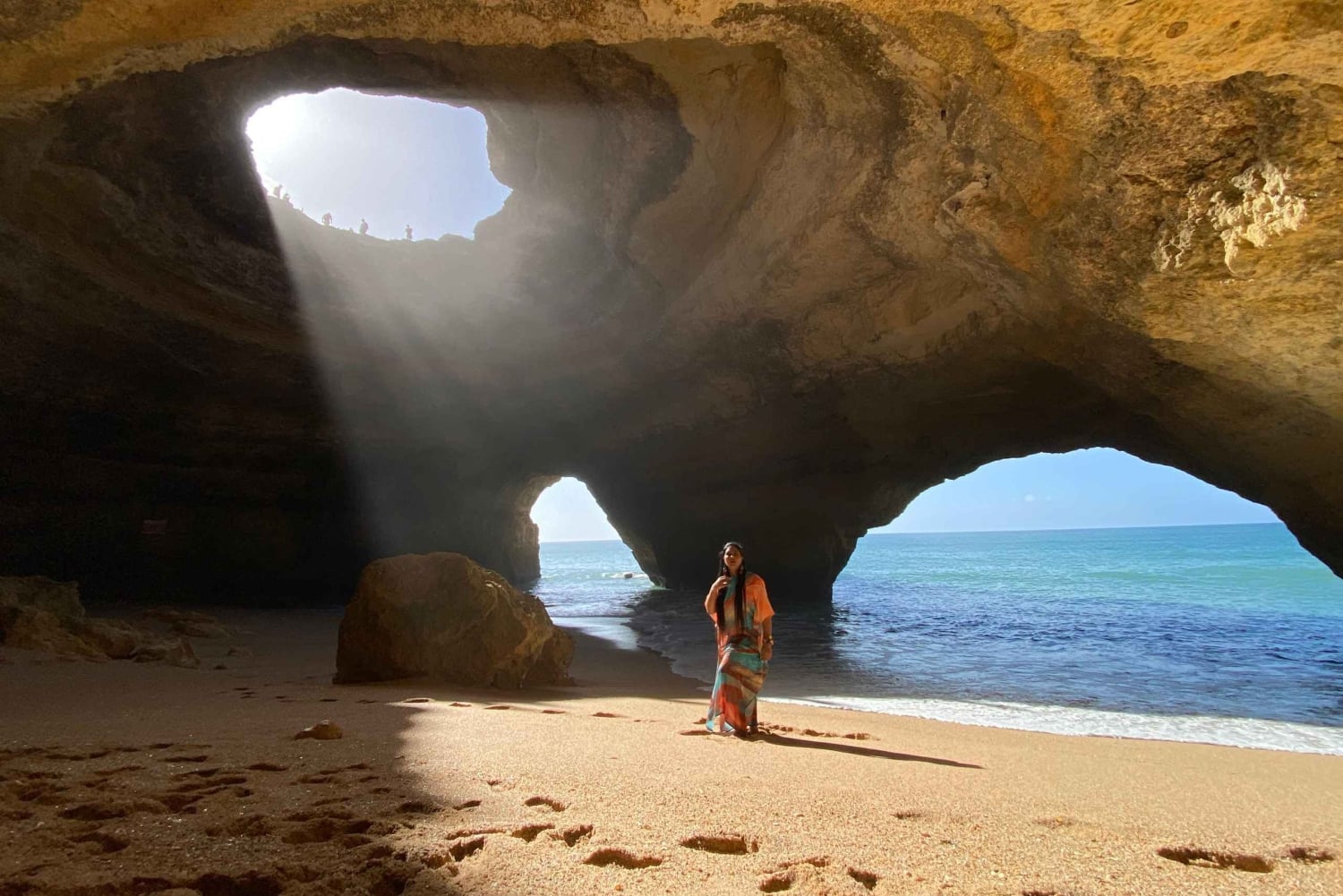 Ge dig ut på en resa med en certifierad instruktör för att utforska de ikoniska Benagil-grottorna och skapa oförglömliga minnen. Det här äventyret ger inte bara hisnande vyer utan inkluderar också GRATIS professionella GoPro-foton, tagna av din expertguide, för att fånga varje ögonblick.
