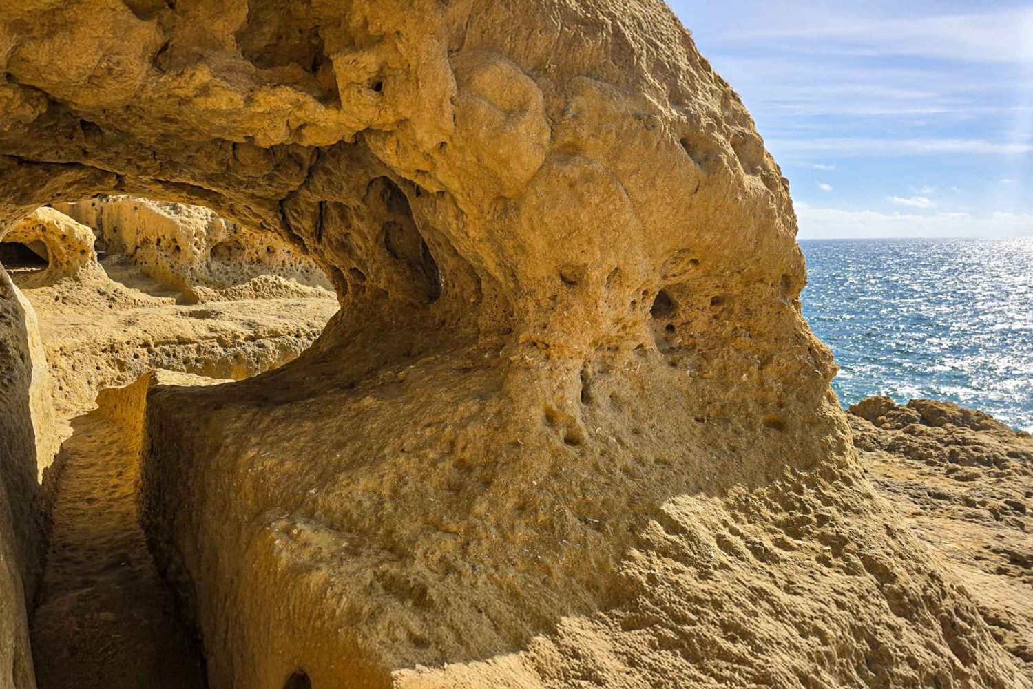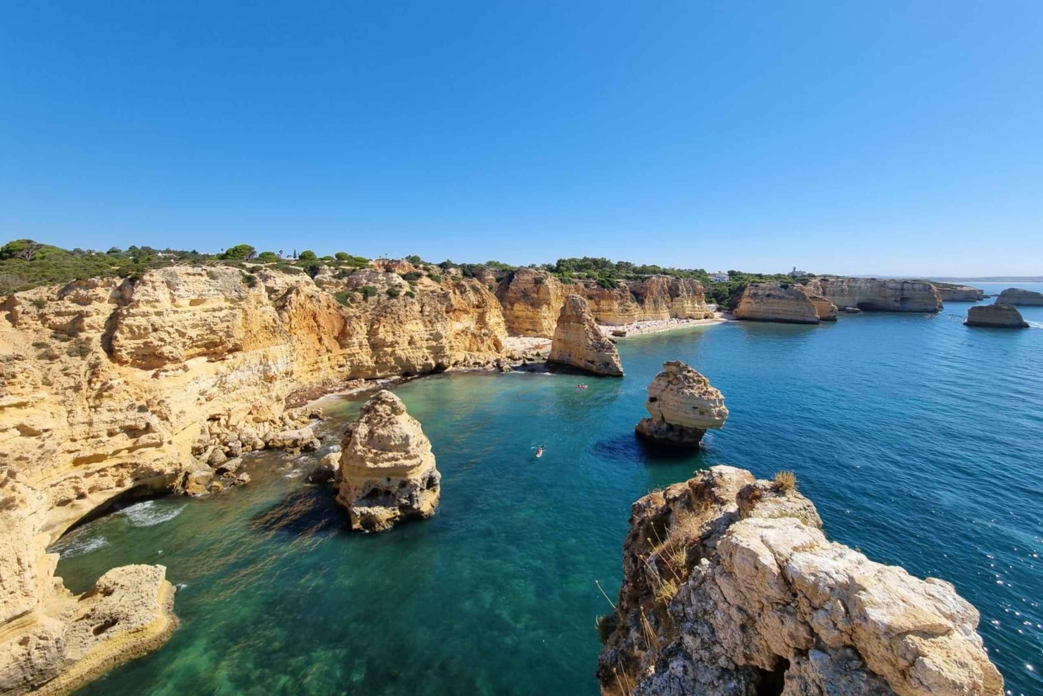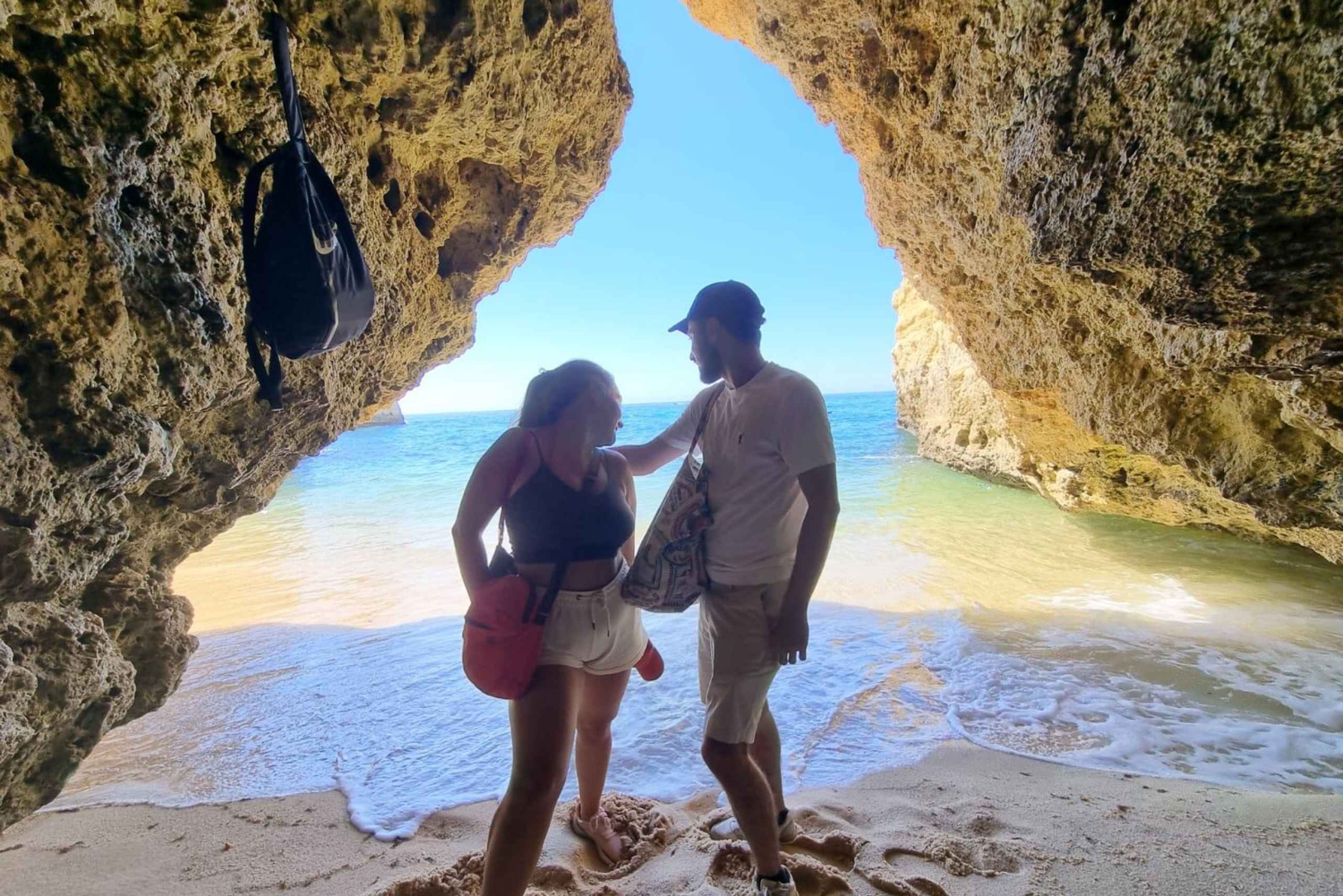Utforska Benagils skatter på en djurvänlig klippvandring! Ta bilder på 24 miljoner år gamla Praia da Marinha (Titanic, hjärta, bro). Kika in i den 16 miljoner år gamla Benagil-grottan. Besök Boneca-grottan och Algarseco. Koppla av på Senhora da Rocha: ett kapell från 1500-talet, en tunnel och stränder. Simma om havet tillåter!