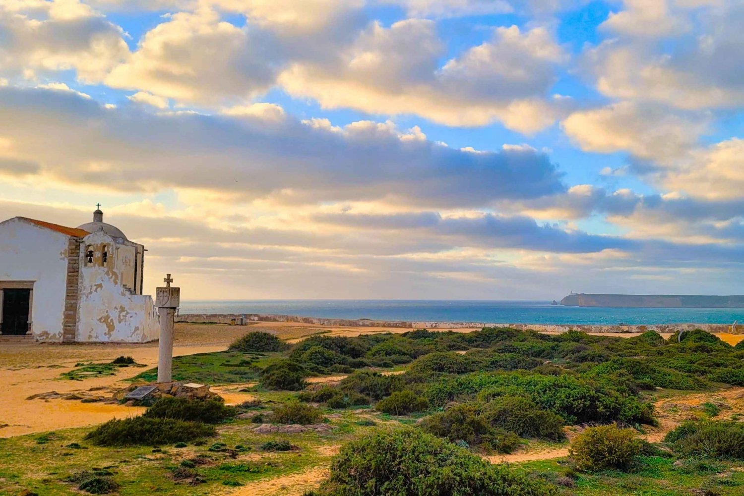 När vi fortsätter vårt terrängäventyr kommer vi att besöka ruinerna av Almadena Fort, en historisk plats som erbjuder en inblick i Algarves maritima förflutna. Denna resa tar oss också till den pittoreska Salema Beach, där du kan se en blandning av solbadare som njuter av den gyllene sanden och fiskebåtar som ger sig ut på sina dagliga resor. Vårt nästa stopp tar oss till Sagres, hem till Cape St. Vincent-fyren, som stolt står på den näst västligaste punkten i Europa. Detta ikoniska landmärke erbjuder vidsträckt utsikt över Atlanten, vilket ger ett perfekt tillfälle att pausa och reflektera över regionens skönhet.